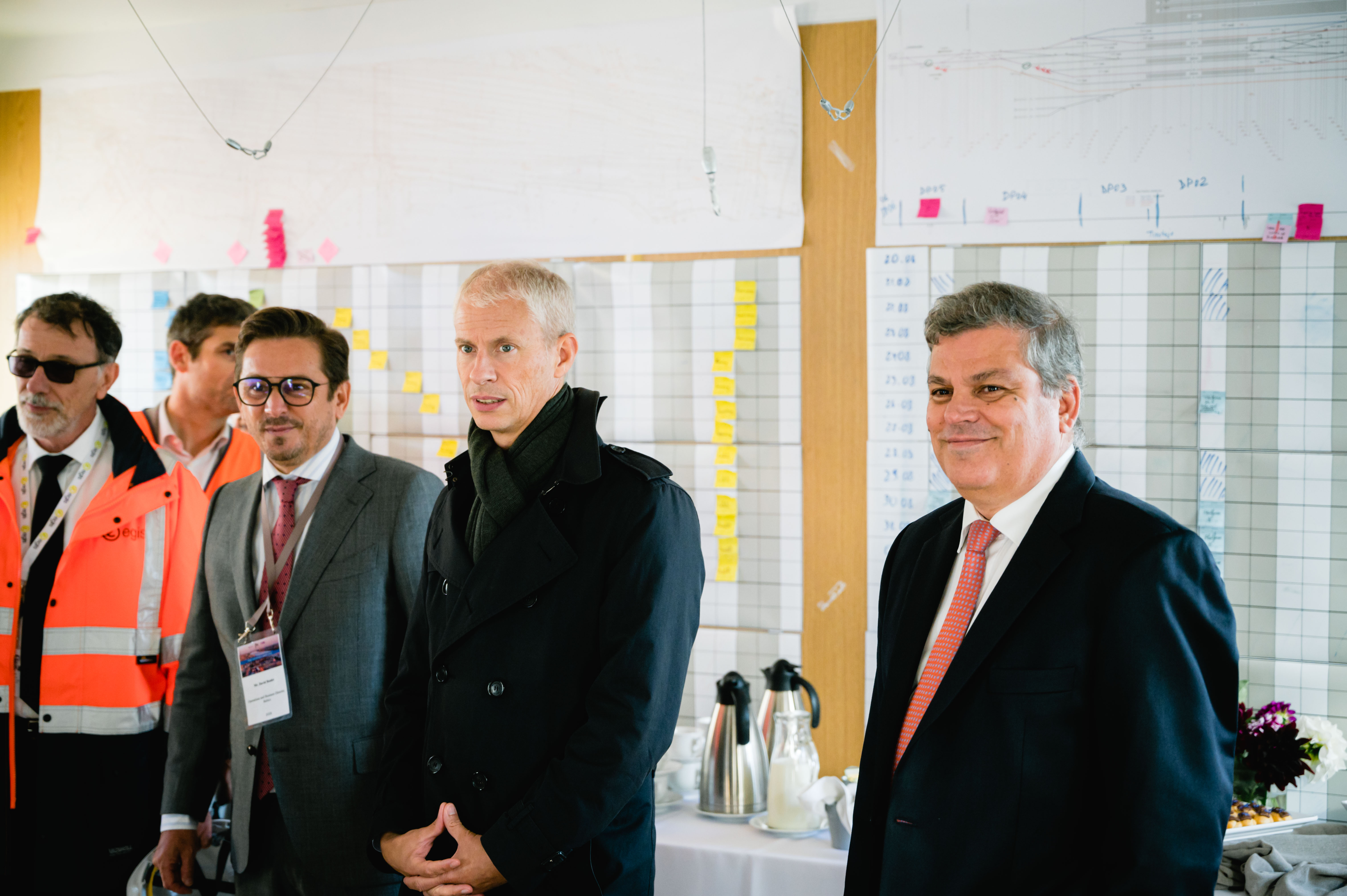 Eiropas Dzelzceļa līnijas valdes priekšsēdētājs Kaspars Vingris un Rail Baltica kopuzņēmuma un globālā projekta koordinatora RB Rail AS tehniskais direktors un valdes loceklis Marks Filips El Bezs (Marc-Philippe El Beze) viesus iepazīstināja ar Rail Baltica projektu, bet tā progresu Latvijā klātienē varēja vērot Centrālā mezgla būvlaukumā.