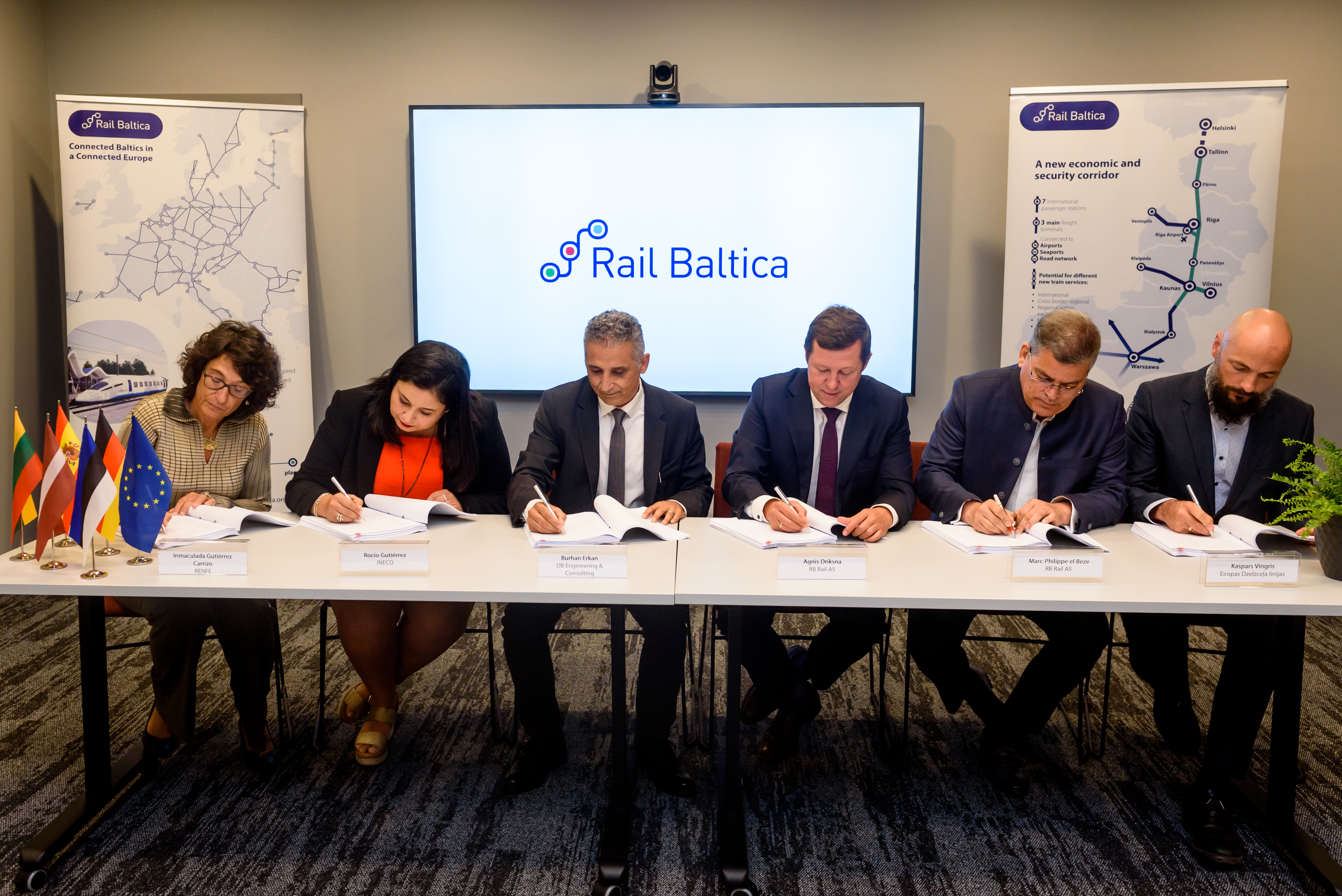 Sutartį pasirašė viešųjų pirkimų konkursą laimėjęs konsorciumas, bendra „Rail Baltica“ Baltijos šalių įmonė ir centrinė projekto koordinatorė „RB Rail AS”, „Rail Baltic Estonia OÜ“ Estijos ekonomikos reikalų ir ryšių ministerijos vardu ir SIA „Eiropas Dzelzceļa līnijas“ Latvijos transporto ministerijos vardu. Konsultavimo paslaugų sutarties trukmė – šeši metai su galimybe pratęsti paslaugų teikimą, sutartis galios iki traukinių eksploatavimo „Rail Baltica” linija pradžios. Bendra sutarties suma – 8 mln. eurų.