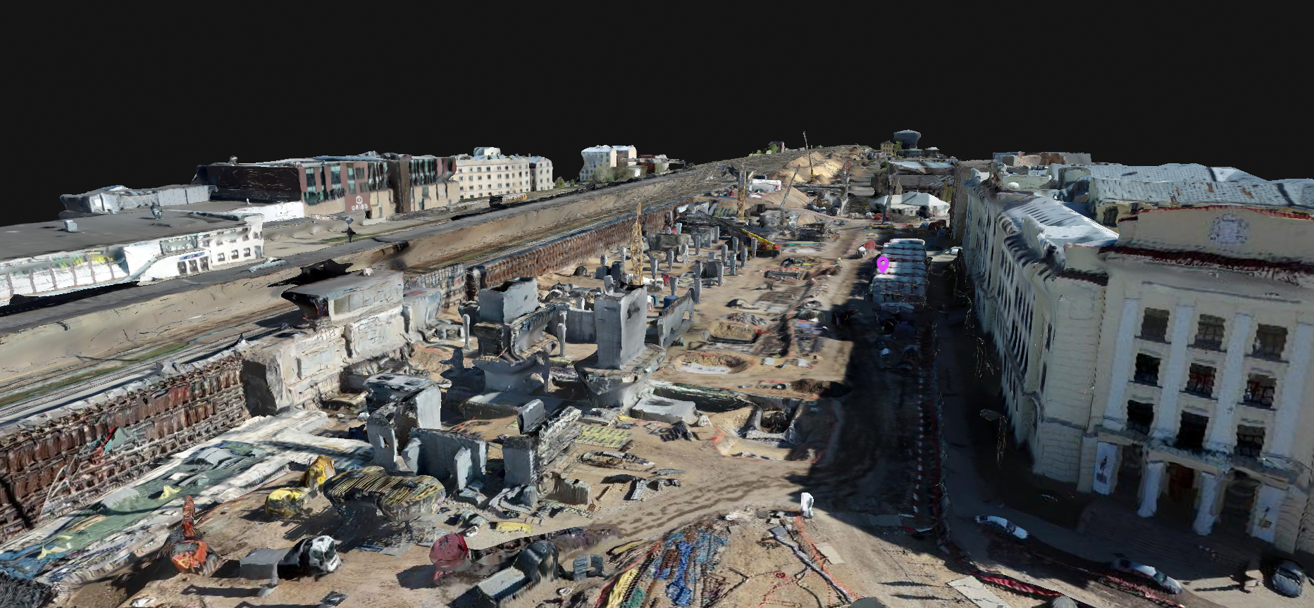 “Ik dienu saņemot videoierakstu, redzams, kāds ir progress būvlaukumā: tā ir iespēja, pat neizejot no biroja, sekot līdzi notiekošajam. Ir bijuši gadījumi, kad mūsu drona veiktā videofiksācija spēj brīdināt arī par potenciālām problēmām, kuras var laikus novērst. Tā, piemēram, kad notika darbi pie Lāčplēša ielas pārvada, no gaisa pamanījām, ka blakus uzbērumam, kur noraka grunti, bija radusies tāda kā plaisa zemē diezgan tuvu sliedēm. Ja šai vietai kāds būvnieks kājām ietu garām, to, iespējams, pat nepamanītu,” stāsta Ģ. Pavlovs. I. Timma papildina: tas, ka drons ik dienu strādā un ievāc datus, arī disciplinē un palīdz uzturēt kārtību būvlaukumā (visi zina, ka viss ir kā uz delnas), kā arī ļauj kontrolēt būvniecības procesu: ieraudzīt, kas jau paveikts un ko darīt turpmāk. “Dati noder arī progresa ziņojuma atskaitei: varam mēnešu griezumā ar fotogrametrijas metodi iegūtajos ortofoto vizuāli redzēt, kā mainās būvlaukums. Gan attēlus, gan video turpmāk var izmantot darbu plānošanai. Bieži ortofoto izmantojam, uz tiem uzliekot projektu un tad plānojot turpmākos darbus, jo ir ļoti uzskatāmi redzams viss būvlaukuma kopskats: redzam, kur ir kādi laukumi, kur varētu sākt kādus papildu darbus, ko izmantot loģistikas iespējām utt. Dati noder arī apjoma sapratnei, jo fotogrametrijas punktu mākoņa attiecīgās programmās var veikt apjoma nomērīšanu: gan dabā esošos attālumus (metrus, centimetrus) kādam elementam, gan apjomus izraktai zemei – to visu var iegūt no šiem datiem ar diezgan lielu precizitāti un ļoti ātri. Kaut kādā brīdī mūsu būvlaukums noteikti palielināsies vēl vairāk, un tad drona izmantošana būs vēl akūtāk nepieciešama. Izstaigāt tik lielu būvlaukumu ikdienā nav tik vienkārši. Drons ir ļoti labs palīgs, jo darbs ar to notiek ātri, diezgan precīzi. Piemēram, fotogrametrijas datu precizitāte standarta gadījumā ir 1–2 cm, mūsu dažos gadījumos esam novērojuši precizitāti pat zem centimetra. Šiem datiem var ticēt, un tie ir ļoti labi izmantojami būvniecībā,” atzīst I. Timma.