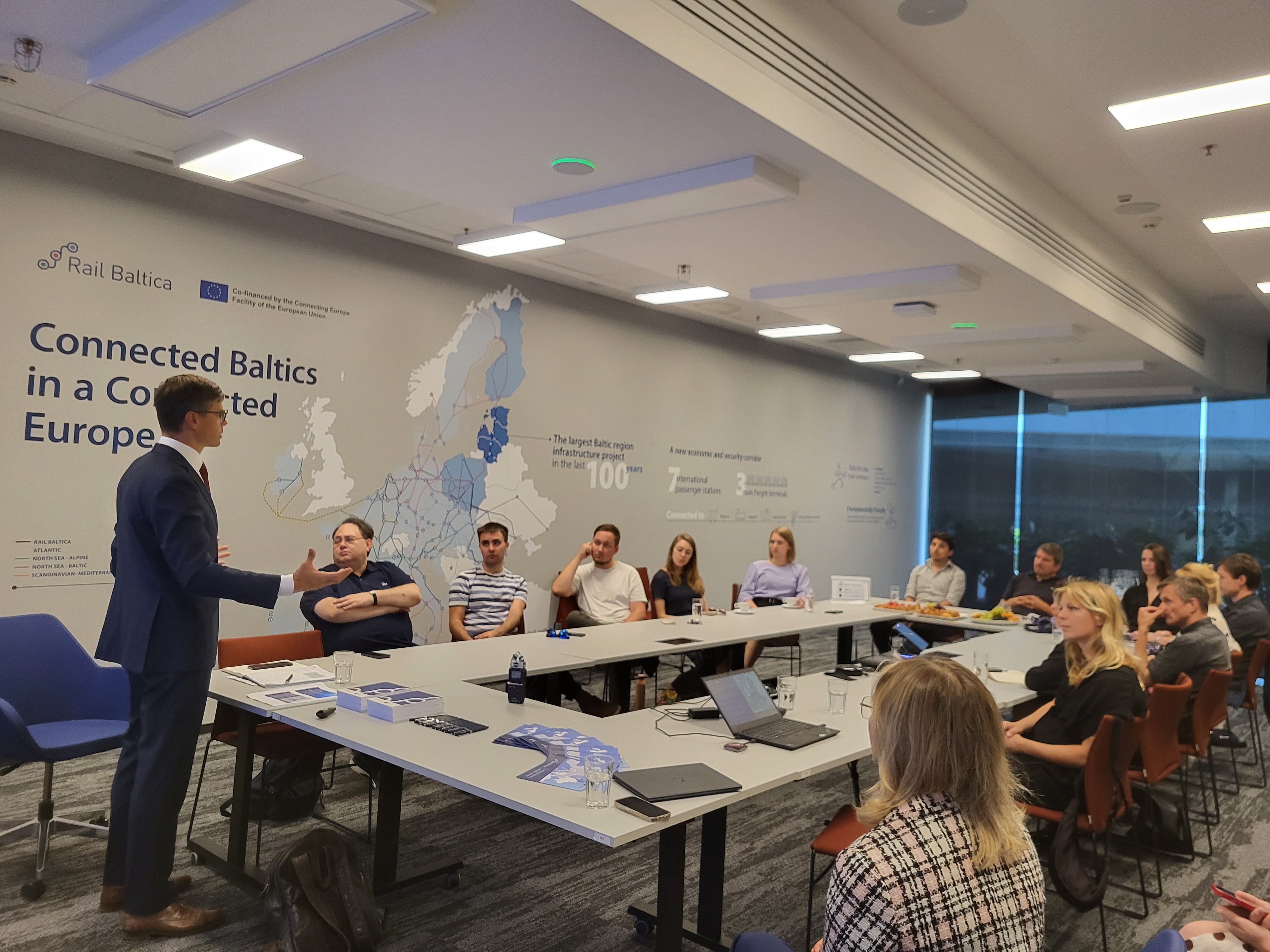 Rail Baltica centrālā koordinatora RB Rail AS padomes loceklis Ģirts Rūda un Rail Baltica projekta ieviesēja Latvijā – uzņēmuma Eiropas Dzelzceļa līnijas – valdes locekle Baiba Zauere, tiekoties ar žurnālistiem no Vācijas, Baltijas un Ziemeļvalstīm, uzsvēra Rail Baltica stratēģisko un ģeopolitisko nozīmi. Projektam ir būtiska loma, savienojot Baltijas reģionu ar Eiropas dzelzceļu tīklu. Tas ir daļa no diviem Eiropas vienotā transporta tīkla koridoriem un tiek simboliski dēvēts par iztrūkstošo posmu Eiropas infrastruktūrā.