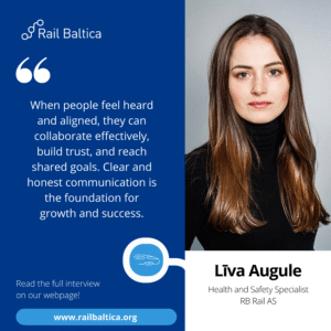 This week, we are pleased to introduce Līva Augule, Health and Safety Specialist at RB Rail AS. Līva joined the Rail Baltica project with a strong sense of purpose, driven by a deep personal connection to health and safety in the workplace. Her dedication stems from a formative experience early in her career that shaped her commitment to making a real difference – ensuring everyone goes home safely at the end of the day.