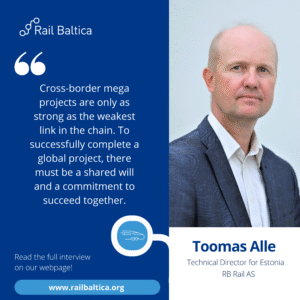 This week, we are thrilled to introduce Toomas Alle, the Technical Director for Estonia at RB Rail AS. Toomas joined the Rail Baltica project three years ago, drawn by the scale and ambition of the initiative – what he describes as a “once-in-a-lifetime” project. Since then, he has navigated the complexities of the project, learning valuable lessons along the way and embracing the opportunities for personal development it has provided.