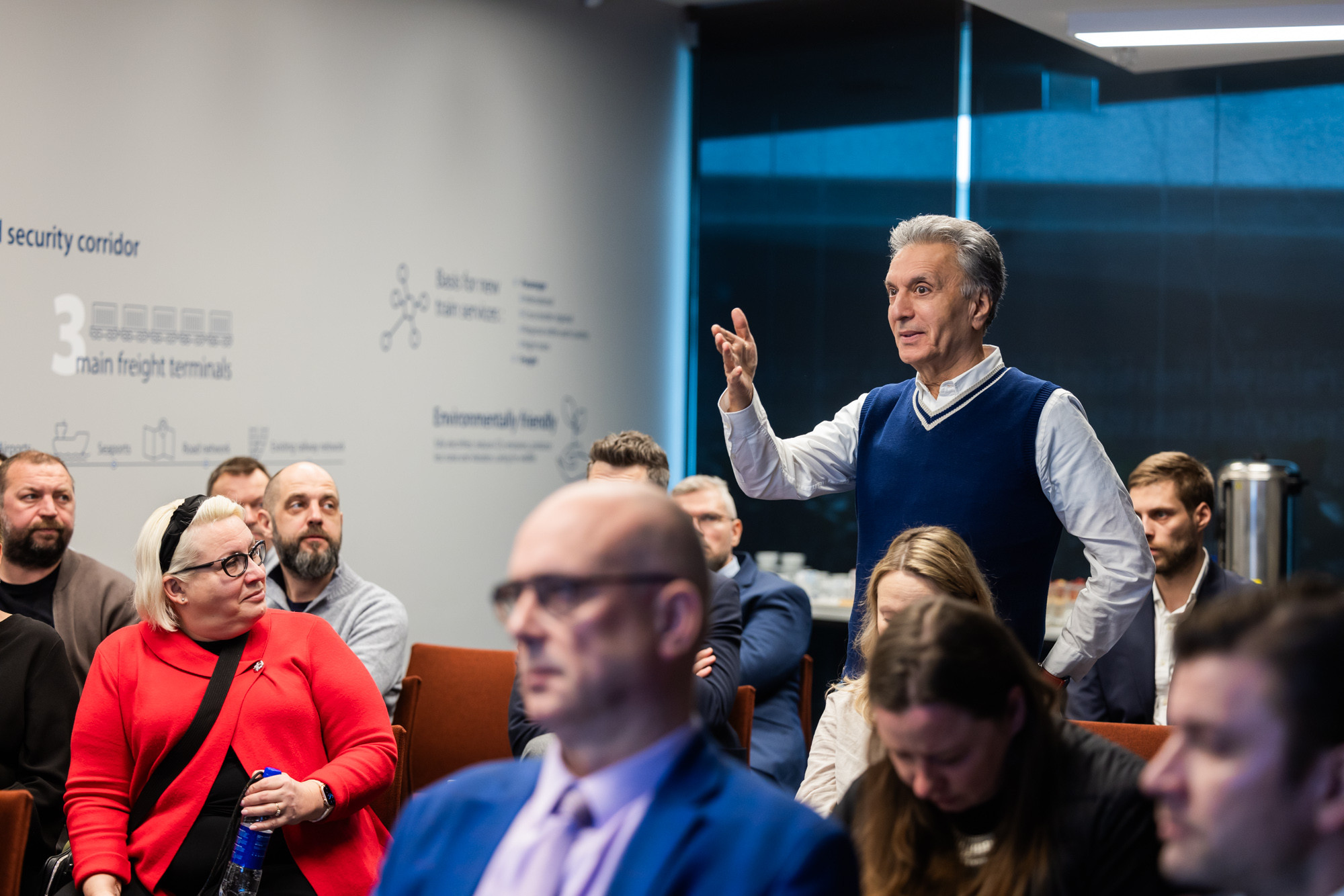 Representatives from various sectors, including logistics, freight, real estate, construction materials production, moving companies, and shipping line companies, participated in the seminar, underscoring the diverse interests and potential impacts of the Rail Baltica project across different industries.